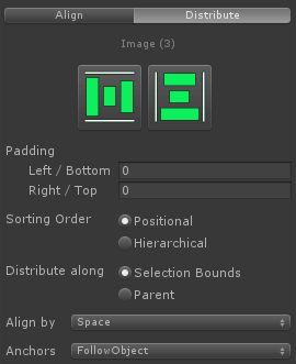 With the Align and Distribute Window, these tasks become a lot easier. You just select the UI elements you want to align or distribute and click a button.