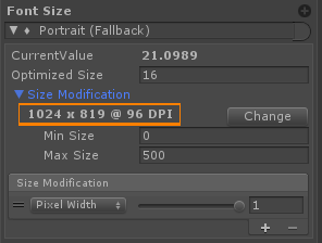In any size modifier the referenced resolution and DPI is displayed. If it is beneath a Override Screen Property the overwritten values are shown. If the "Change" button next to the resolution info is pressed, the parented Override Screen Property is selected if any (otherwise the Resolution Monitor).
