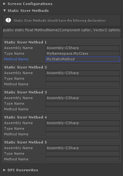 • Assembly Name: By default this is "Assembly-CSharp". If you put your class in another assembly (via assembly definition file), you should change the name accordingly.