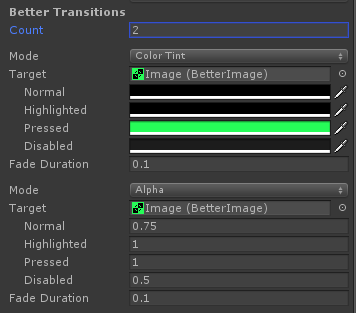 Example: If you need a button where the background color should change as well as the text color you could add a "Better Transition" for the Text object.