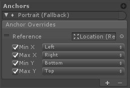 - Min X, Max X, Min Y, Max Y: The anchor min and max values which can be overridden by the reference (to override, enable it)