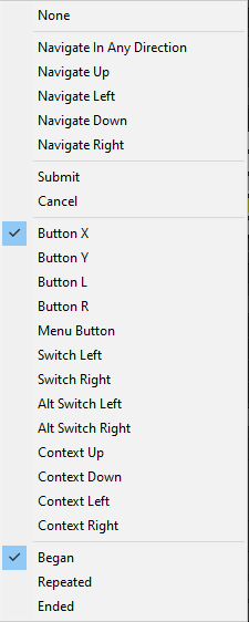 This is for the standard navigation, usually the left stick. You can check for a specific direction, or if the user tries to move into any direction. - Standard Actions