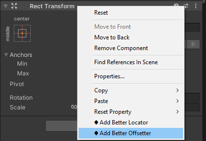 You can easily add it by right-clicking on a RectTransform and select “Add Better Offsetter”.