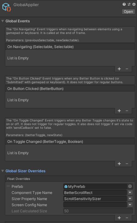 After doing so, every Better Scroll Rect in the game will use the "Last Calculated Size" of the created entry for their ScrollSensitivitySizer.