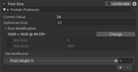 - Size Modification (List): Contains Setting entries of how the size should be calculated. If the list is empty, the size will always be the optimized size.