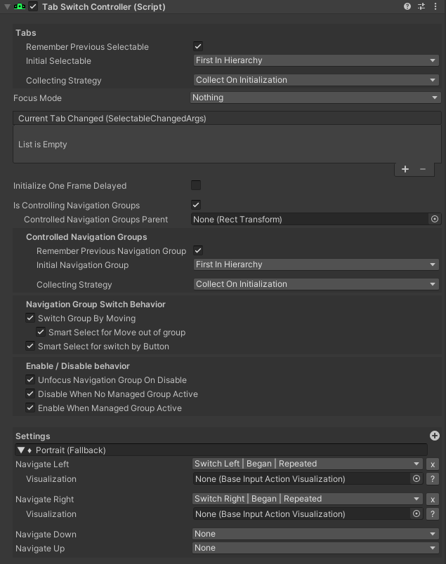 - NavigateLeftInput / NavigateRightInput / NavigateUpInput / NavigateDownInput