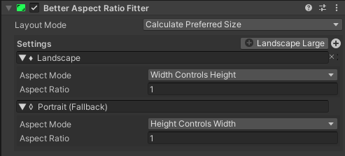 Treats the Aspect ratio as layout element by calculating the size of the object (for both: MinSize and PreferredSize). This allows it to be properly used inside Layout Groups. - Ignore Layout
