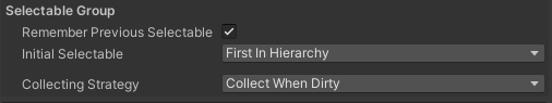 The lower-most selectable in the hierarchy structure beneath the game object with the Selectable Group is selected. - Specific